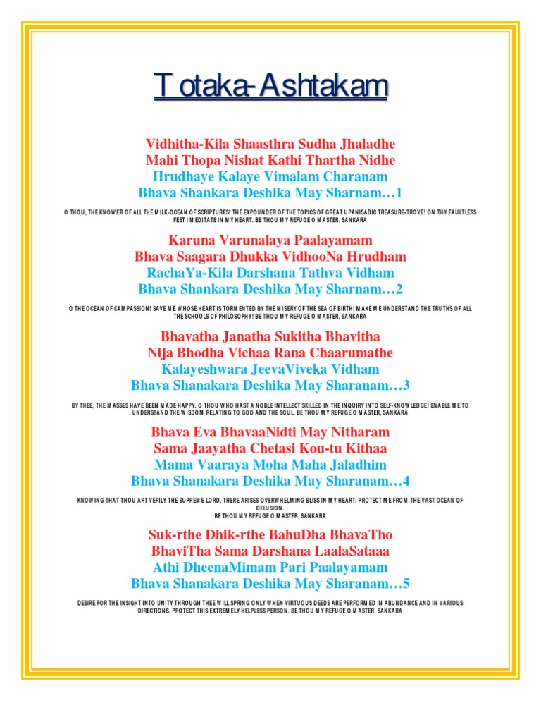 Totakashtakam With Lyrics And Meaning In English Totakaashtakam stotram lyrics in tamil: